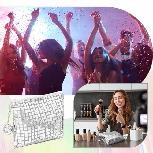 • Aesthetic Appeal: don't just carry a bag, showcase a stylish accessory that elevates your style; Our sparkly makeup bag can show the retro style of the 70s and 80s; The lens reflects light onto its surface, producing a brilliant light effect that flashes under the light, giving people a feeling of energy