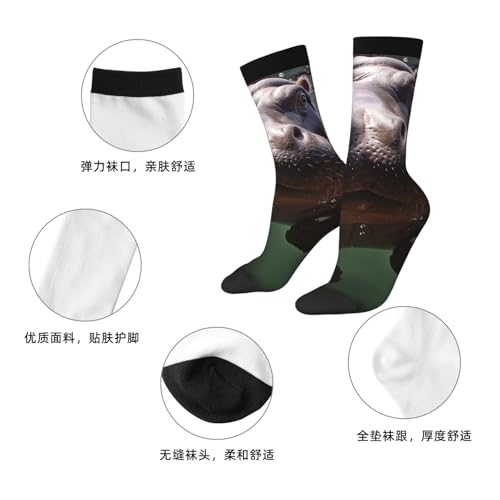 Diving Hippo Crew Socks Women Men Cushioned Athletic Socks Adult Calf Socks Casual Above Ankle Sock 4