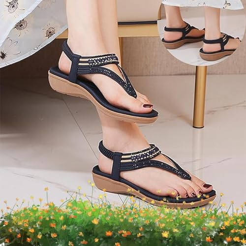 • Stylish & Distinctive Bohemian Design These sandals feature a classic bohemian T-Strap silhouette and an open-toe design, adding a unique and eye-catching flair to your look. The elastic back strap ensures effortless slip-on/off convenience.