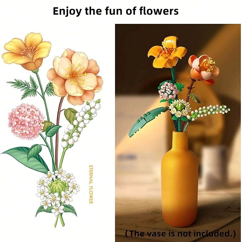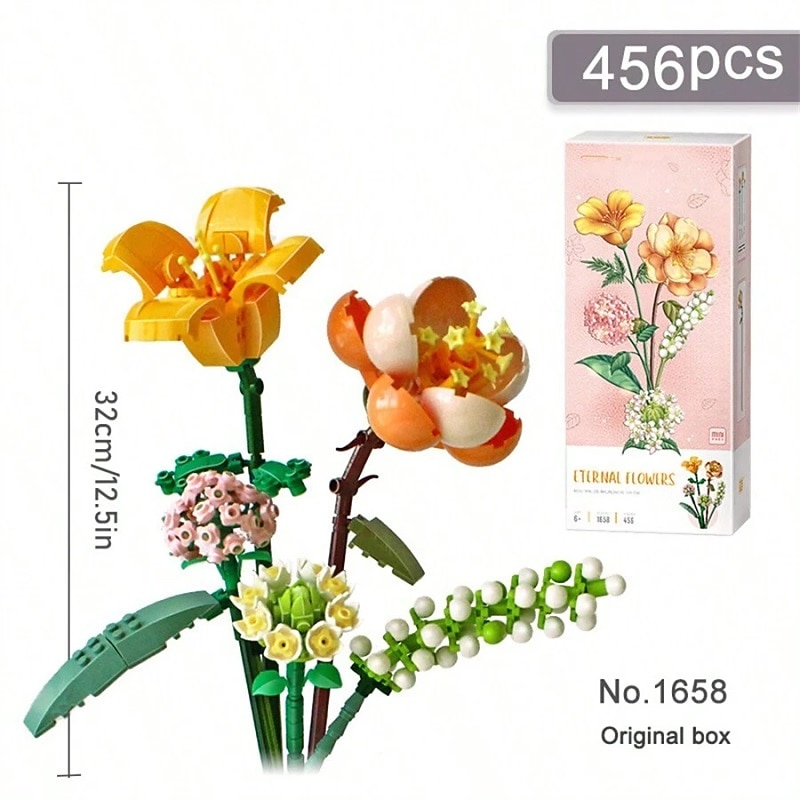 HOT ! Women's Day Gifts Miniature Building Blocks Bouquet Set Artificial Flowers Diy Unique Home Decor Valentine's Day Girlfriend Gift Mother's Day Gift B Mother's Day Gifts for MoM