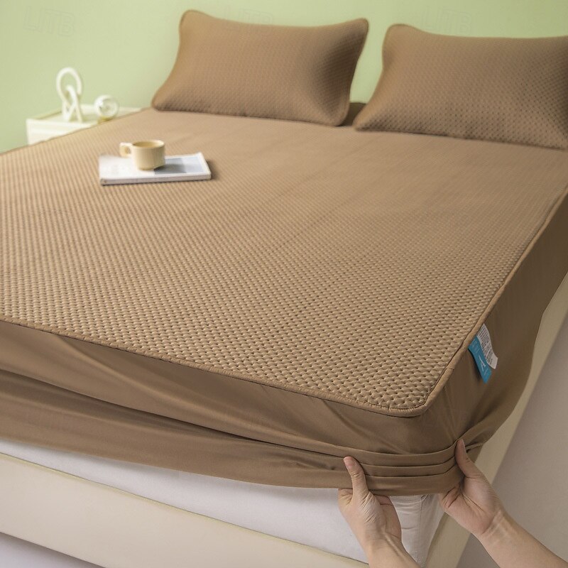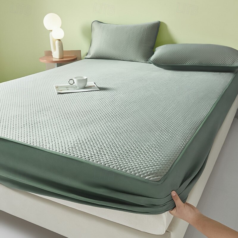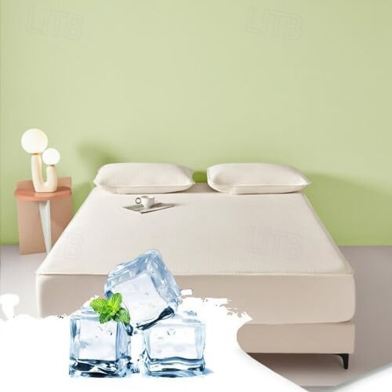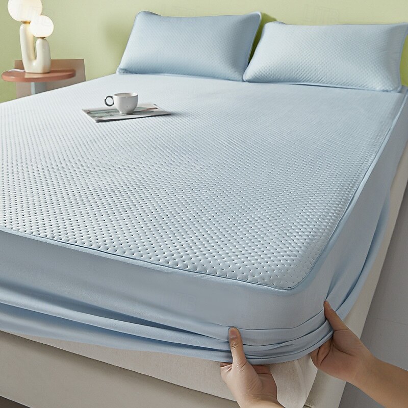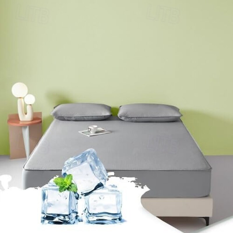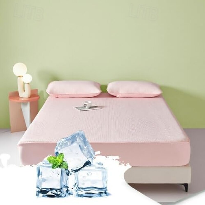 HOT ! Summer Cooling Bedding Fitted Sheet Queen, Bed Sheet 1 Piece Solid Color Breathable Chemical Fiber Fitted Bedsheet Easy Care Fade Resistant Bedding