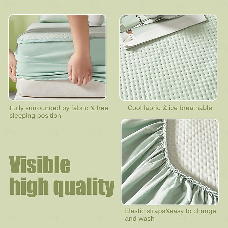 More information about Summer Cooling Bedding Fitted Sheet Queen, Bed Sheet 1 Piece Solid Color Breathable Chemical Fiber Fitted Bedsheet Easy Care Fade Resistant Bedding