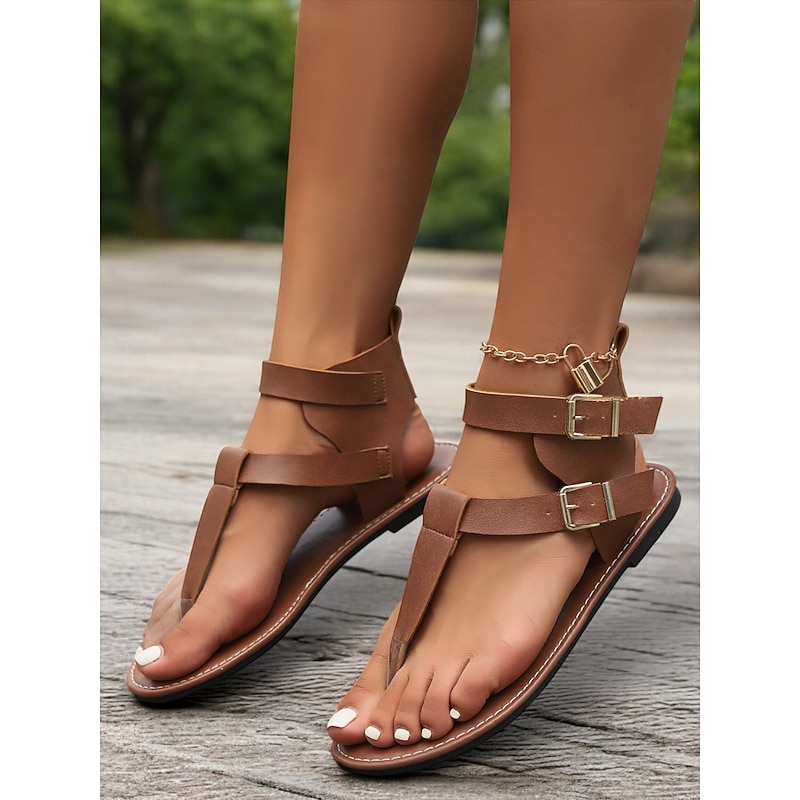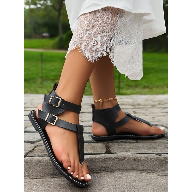 Highlights - Luxurious faux leather upper materials - Classic round toe shape for timeless style - Trendy open toe design for a modern touch - Durable rubber outsole for long-lasting wear - Stay ahead of the fashion curve with 2024 trends featuring Gladiator and Roman sandals.