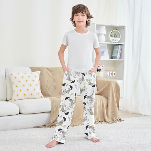 ZZXXB Bear Riding Bike Boys Long Pants Soft Trousers Elastic Waist Kids Lounge Bottoms with Pockets S-XL 2