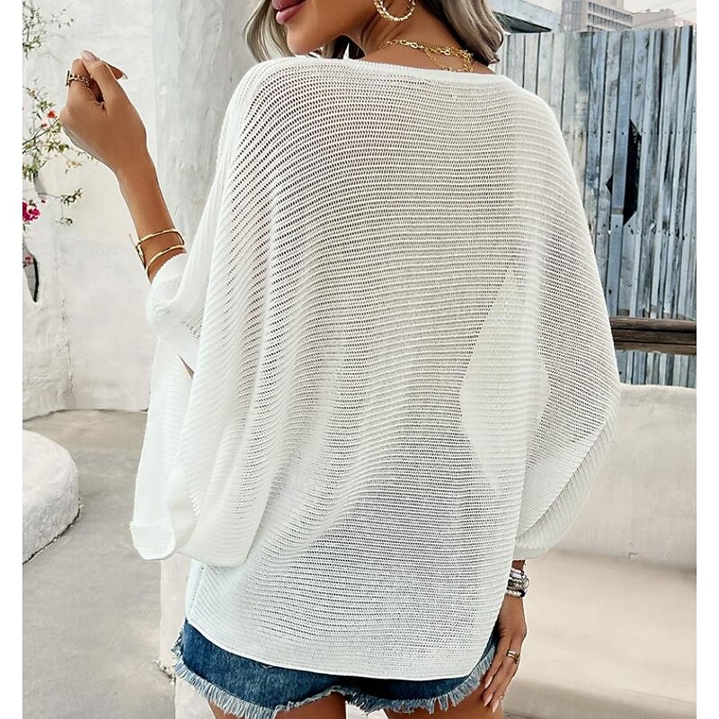 More information about Women's Sweater Elegant Solid Color Crochet V Neck Knitted Half Sleeve Regular Tops Knit Daily Wine Red White Summer