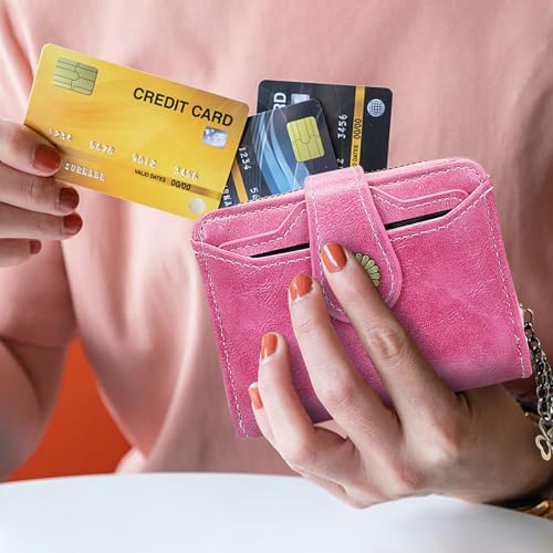 Small Wallets, PU Leather Bifold Card Holder Wallet for Women, Flower Decoration Compact Purse with Coin Pocket (Pink) 7