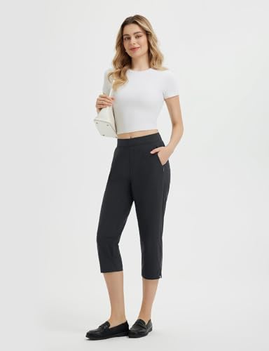baleaf 20'' Women Capris with Pockets Stretch Golf Work Dress Cropped Pants Straight Leg High Waisted Pull On Summer 2