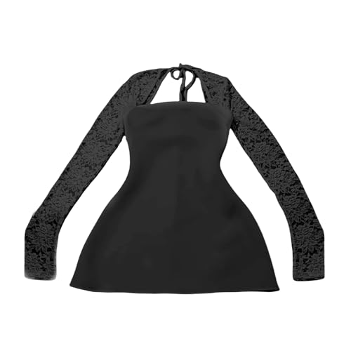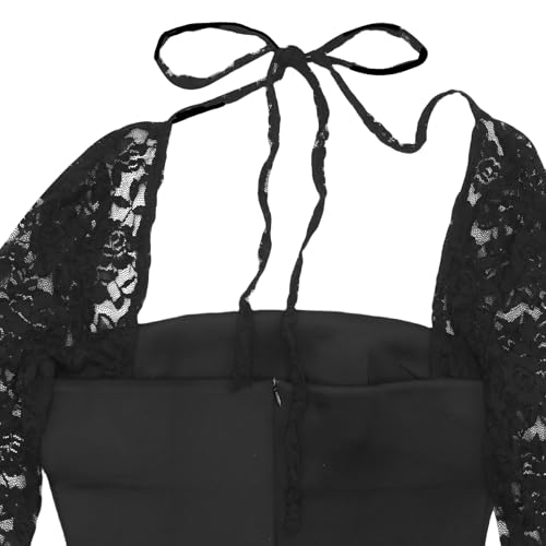 • Features: Lace patchwork flare long sleeve, tie-up, zipper back, chic square neck, bodycon slim fit top, A-line silhouettes, dressy dresses for women