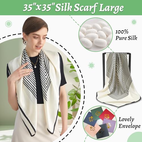 100% Mulberry Silk Head Scarf for Sleeping 35"x35" Square Silk Hair Scarf for Women Lightweight Bandana Large 5