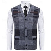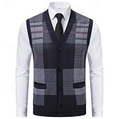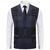 More information about Men's Sweater Sweater Vest Dress Sweater Cardigan Sweater Knit Sweater Ribbed Knit Regular Tops Knitted Ribbed Plaid V Neck Fashion Shawls Business Casual Clothing Apparel Fall Winter Navy Blue Light