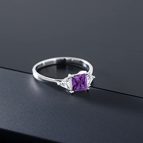Gem Stone King 10K White Gold Purple Amethyst and White Moissanite 3 Stone Engagement Ring For Women (0.97 Cttw, February Birthstone, Princess 5MM, Trillion 3.5MM) 7