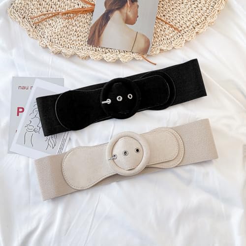 Fashion Wide Stretchy Cinch Belt for Women Retro Vintage Chunky Buckle Elastic Belts for Dress 3