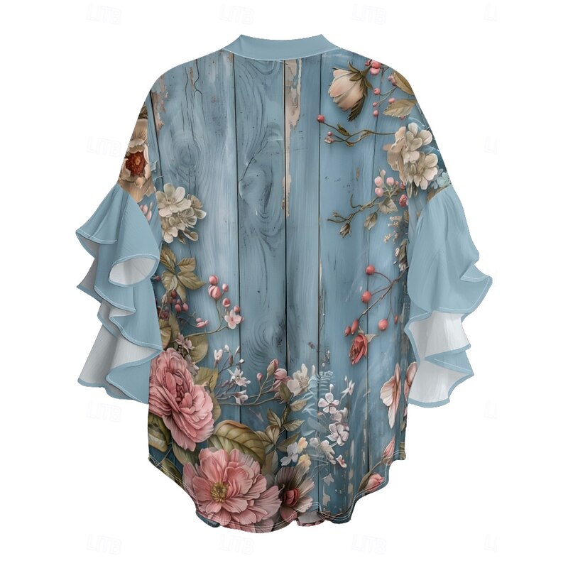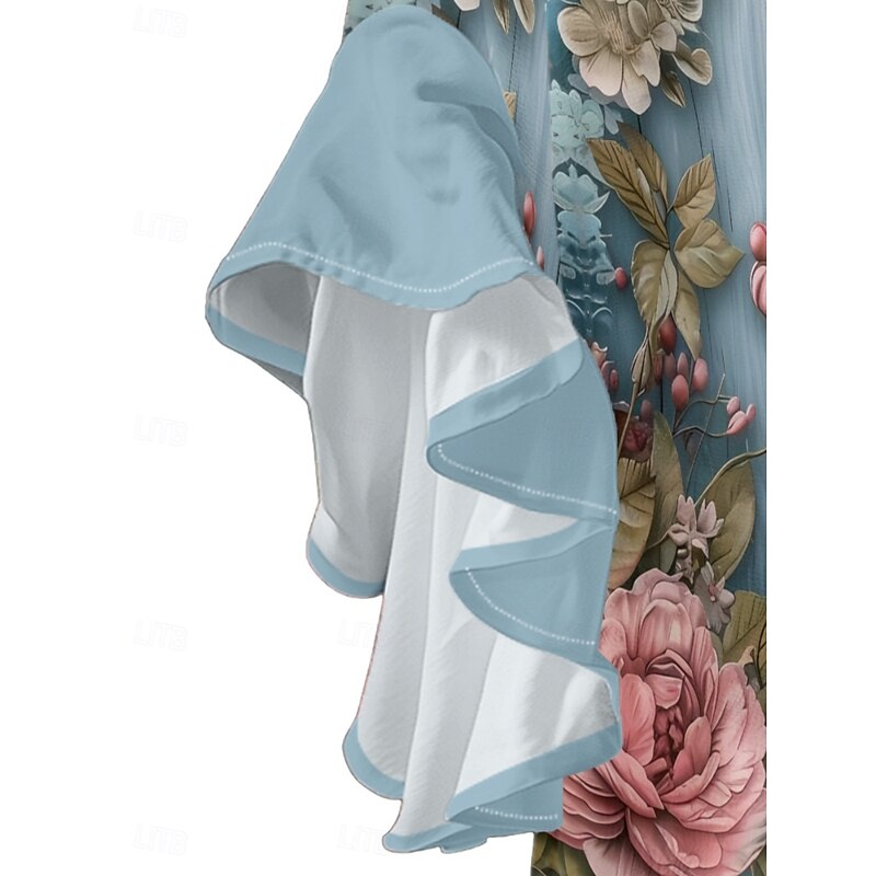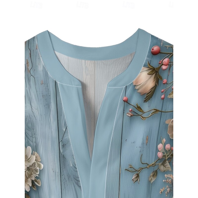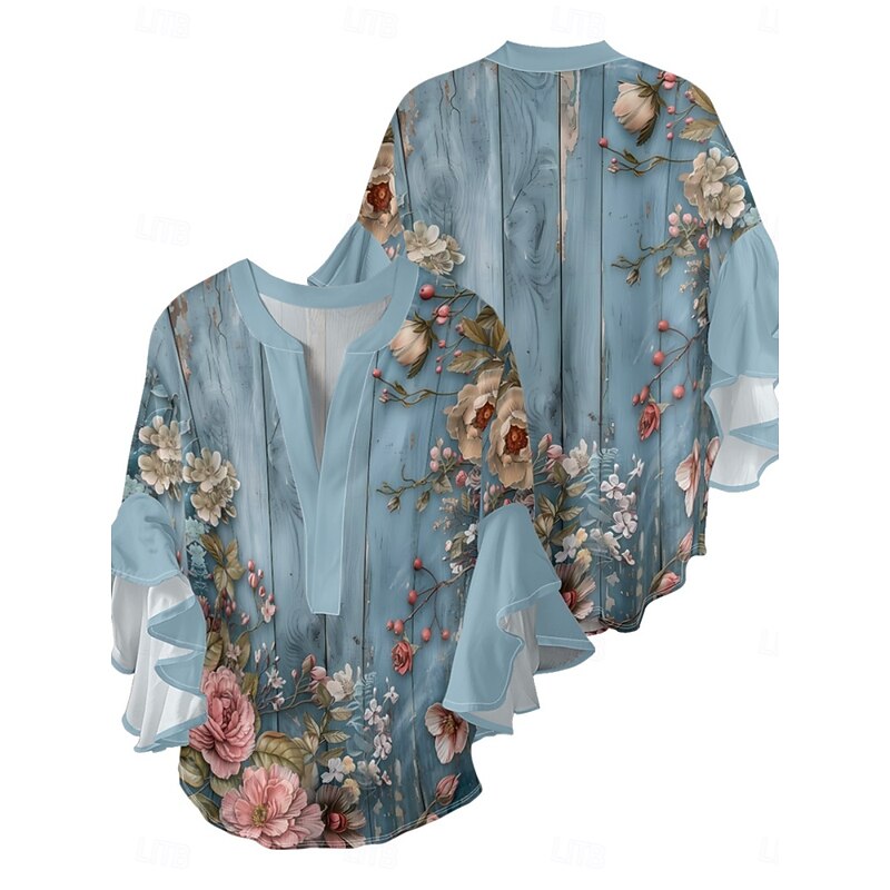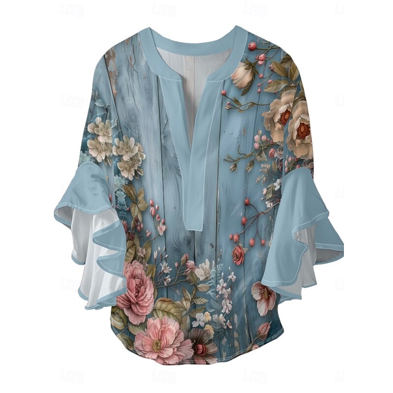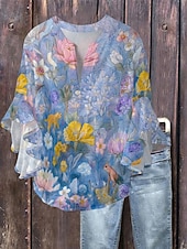 More information about Women's Blouse Floral Stylish Modern 3/4 Length Sleeve V Neck Regular Tops Daily Holiday Ruffle Print Blue Lavender Purple Green Summer