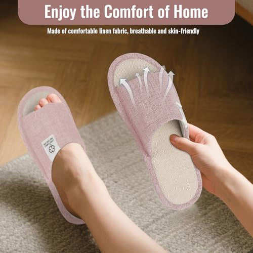 Slippers for Women,Memory Foam Soft Warm Slip On Open Toe Linen Cotton House Slippers,Anti-Skid Cozy for Indoor Outdoor Slippers 5