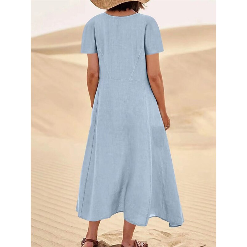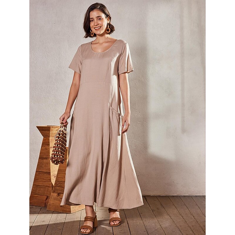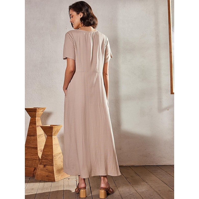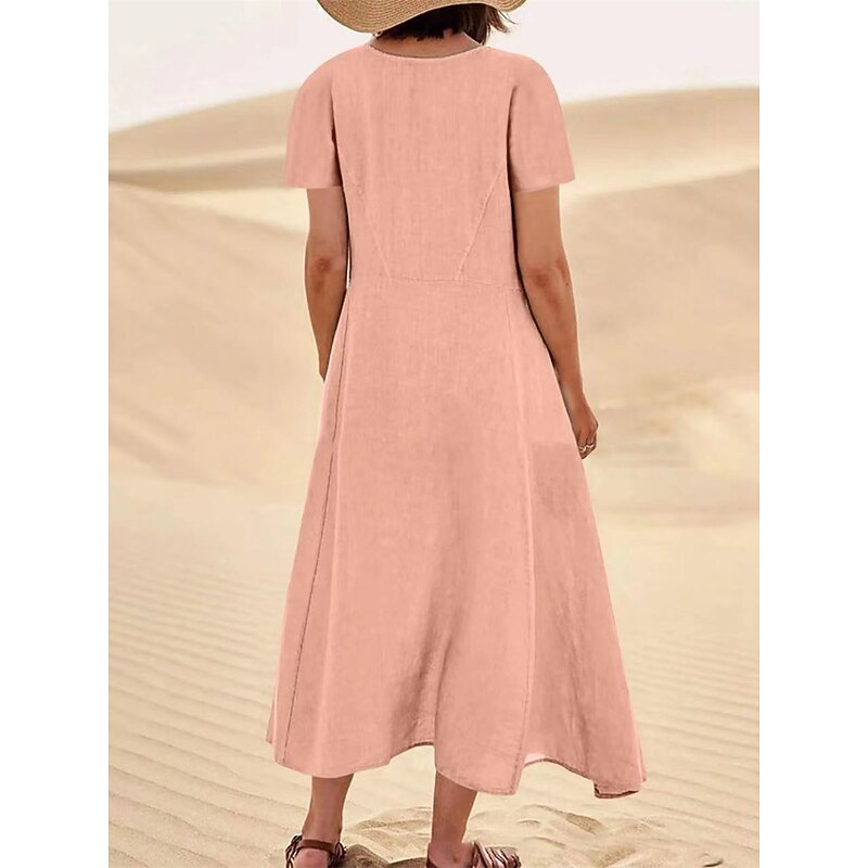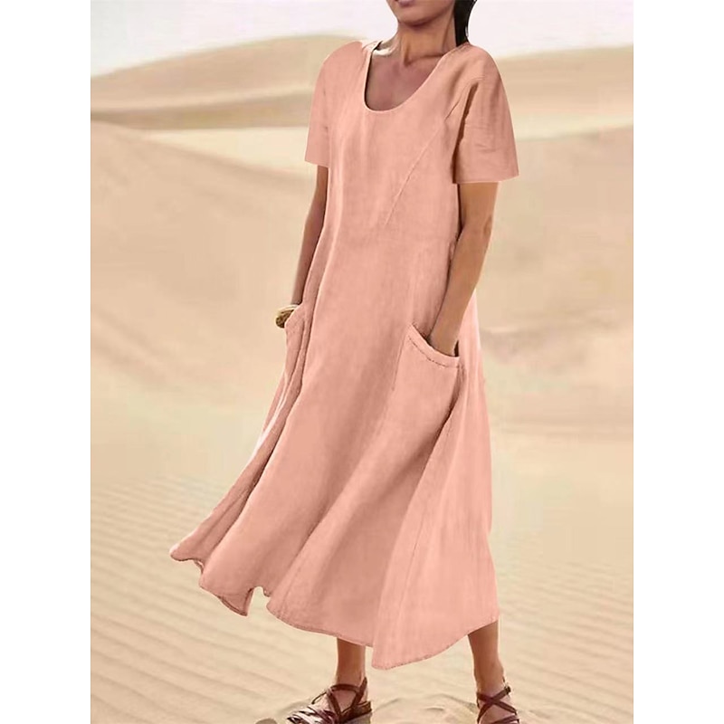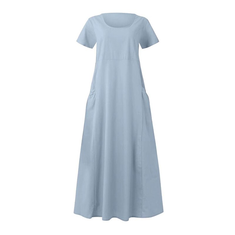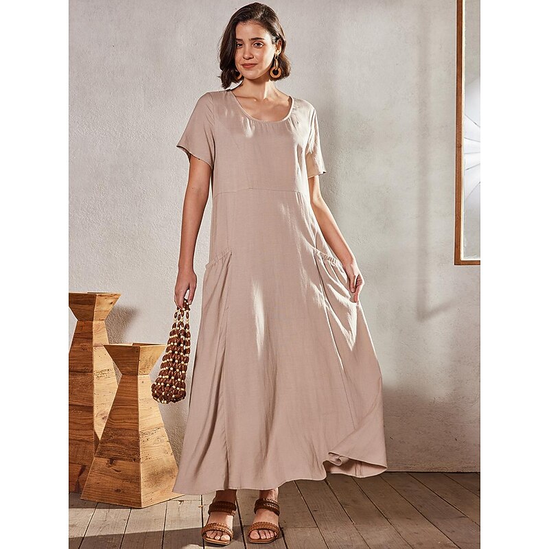 HOT ! Women's Pink Sky Blue khaki Summer Maxi long Dress Maxi Dress Cotton Linen Dresses Casual Dress Solid Daily Loose Fit Crew Neck