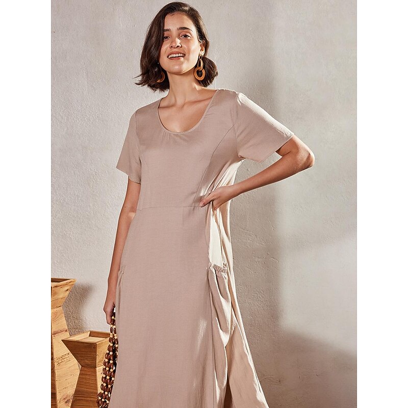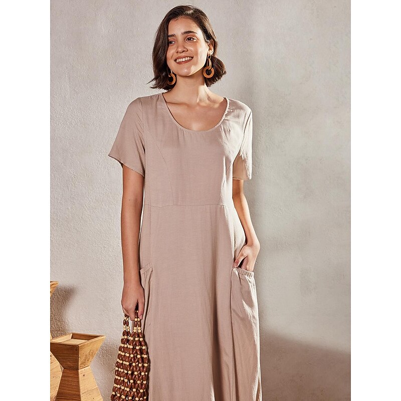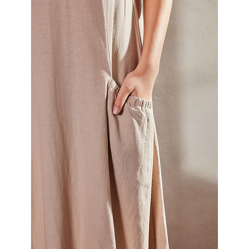 More information about Women's Pink Sky Blue khaki Summer Maxi long Dress Maxi Dress Cotton Linen Dresses Casual Dress Solid Daily Loose Fit Crew Neck