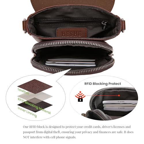 HOT ! HESHE Genuine Leather Purses for Women Anti-Theft RFID Blocking Crossbody Bag Small Cell Phone Purse with Adjustable Strap (Coffee)