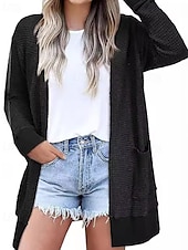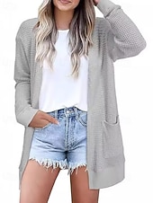 More information about Women's Cardigan Fashion Solid Color Ribbed V Neck Pocket Knitted Long Sleeve Regular Tops Knit Holiday Going out Weekend Black Light Grey Fall Winter