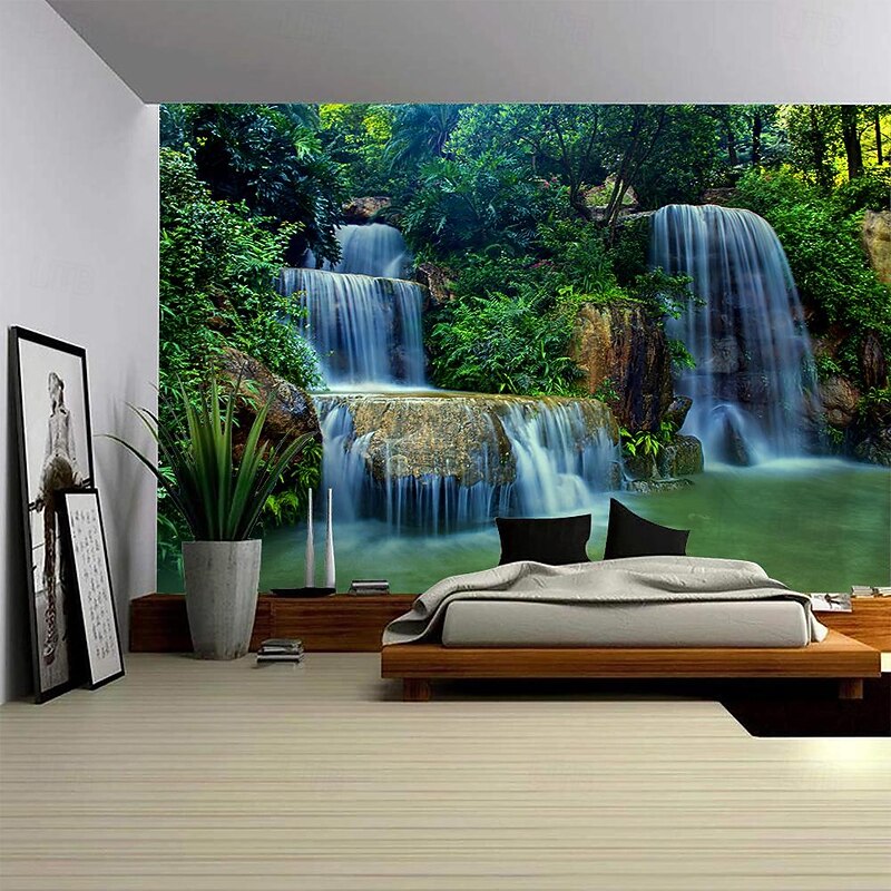 HOT ! Waterfall Landscape Hanging Tapestry Wall Art Large Tapestry Mural Decor Photograph Backdrop Blanket Curtain Home Bedroom Living Room Decoration