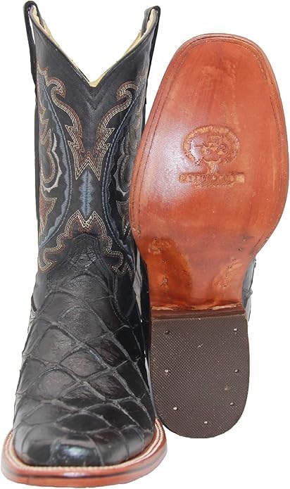 • DESIGN: Men’s Exotic Pirarucu Monster Fish Embossed Western Cowboy Boots | Unique and Striking Exotic Pirarucu Fish Design Pattern | Mid Calf | Square Toe