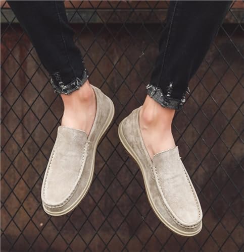 HOT ! Mens Loafers Shoe Genuine Leather Stitching Details Round Toe Suede Vamp Flexible Comfortable Slip Resistant Walking Slip-on