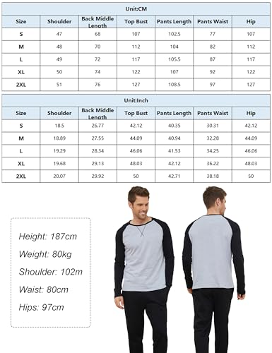 GAESHOW Mens Pajamas Set, Male Cotton Sleepwear Long Sleeve Shirt and Pant Set, O-Neck Winter Thermal Loungewear Pjs 2