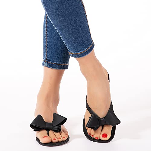 Mtzyoa Women Flip-Flops Flat Sandals Jelly Bow Beach Flat Rivets Rain Cute Dressy Summer Sandals 6