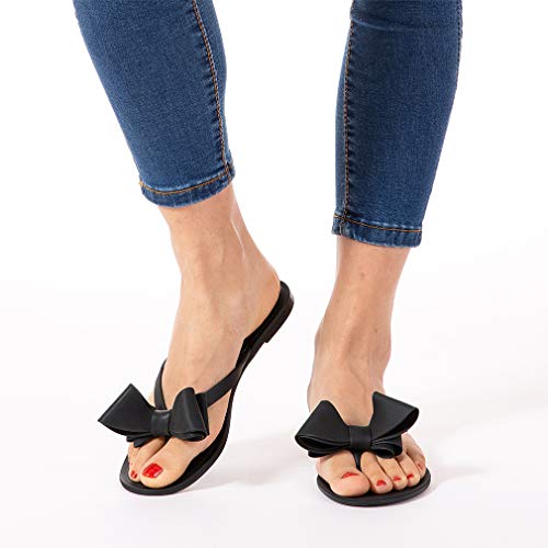 Mtzyoa Women Flip-Flops Flat Sandals Jelly Bow Beach Flat Rivets Rain Cute Dressy Summer Sandals 5