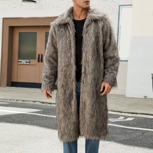 HOT ! Cambkatl Men's Long Luxury Faux Fur Coat Furry Lapel Collar Long Sleeve Outerwear Fluffy Winter Warm Cardigans Jacket