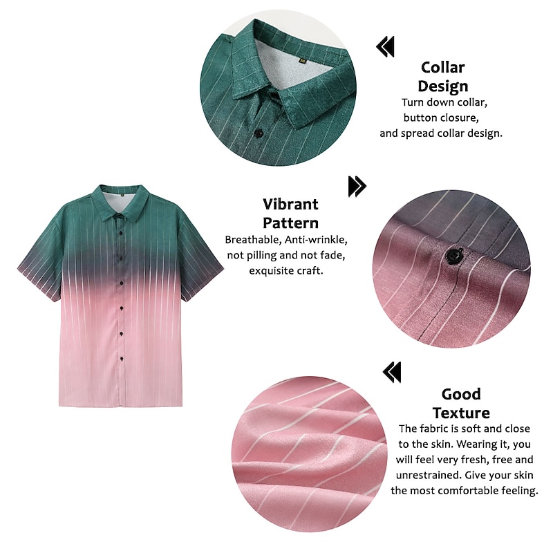 More information about Men's Gradient Geometric Pattern Shirt Button Up Shirt Short Sleeve Fashion Designer Casual Outdoor Casual Summer Spring Turndown Print Blue Dark Green Purple Green Khaki