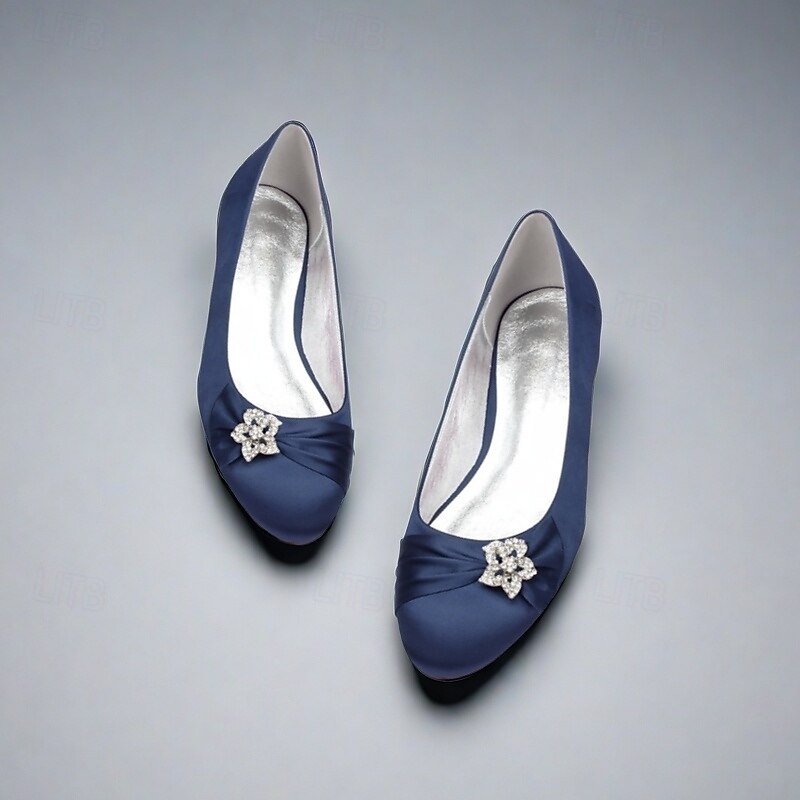 Women's Navy Satin Ballet Flats with Rhinestone Floral Embellishment - Elegant Wedding or Evening Shoes 19