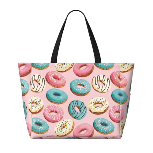 Waterproof Sandproof Beach Bag Blue Pink White Donut Print Swim Large Tote Pool Bag For Women With Zipper 1