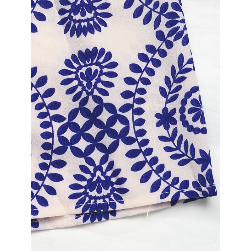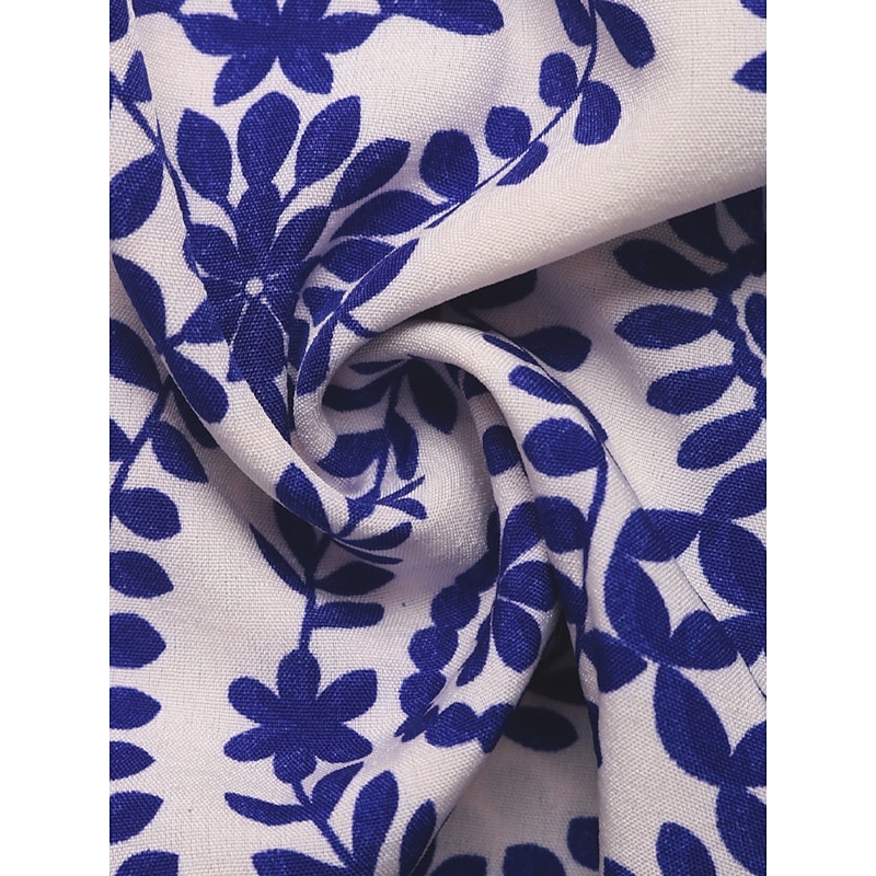 Women's Normal Romper Active Floral Short Sleeve Square Neck Pocket High Waist Vacation Daily Regular Fit Blue Summer 7