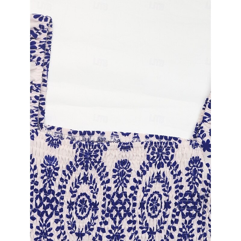 More information about Women's Normal Romper Active Floral Short Sleeve Square Neck Pocket High Waist Vacation Daily Regular Fit Blue Summer