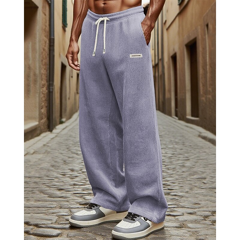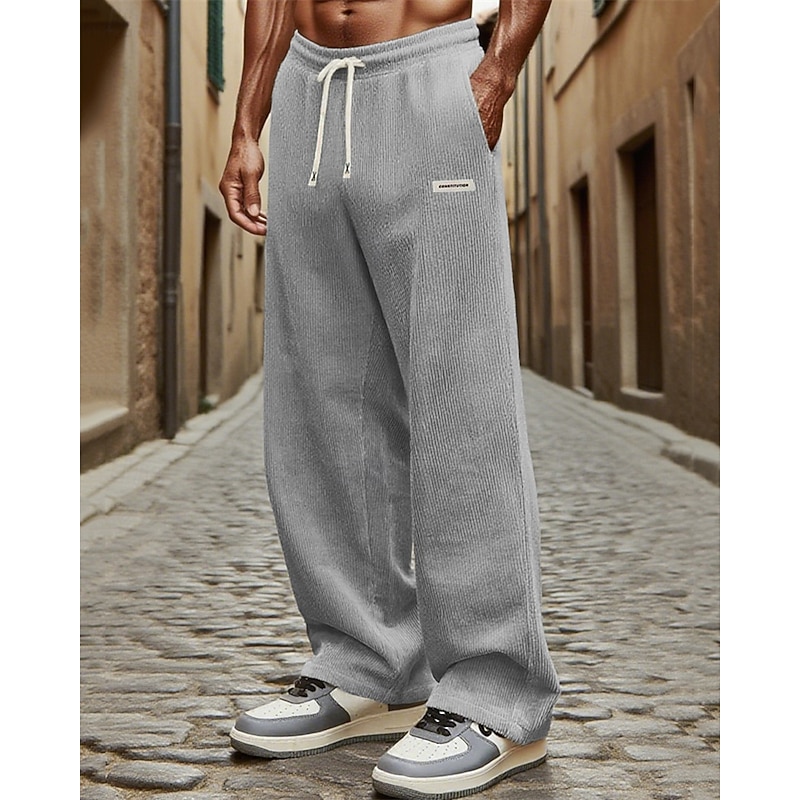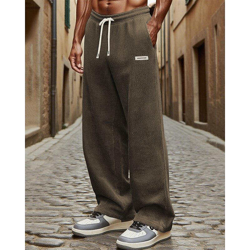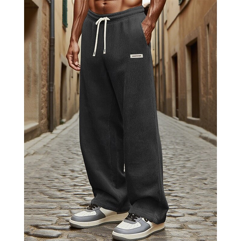 HOT ! Men's Sweatpants Corduroy Pants Trousers Casual Pants Straight Leg Sweatpants Pocket Elastic Waist Drawstring Plain Comfort Sports Outdoor Daily Fashion Casual Black White Micro-elastic