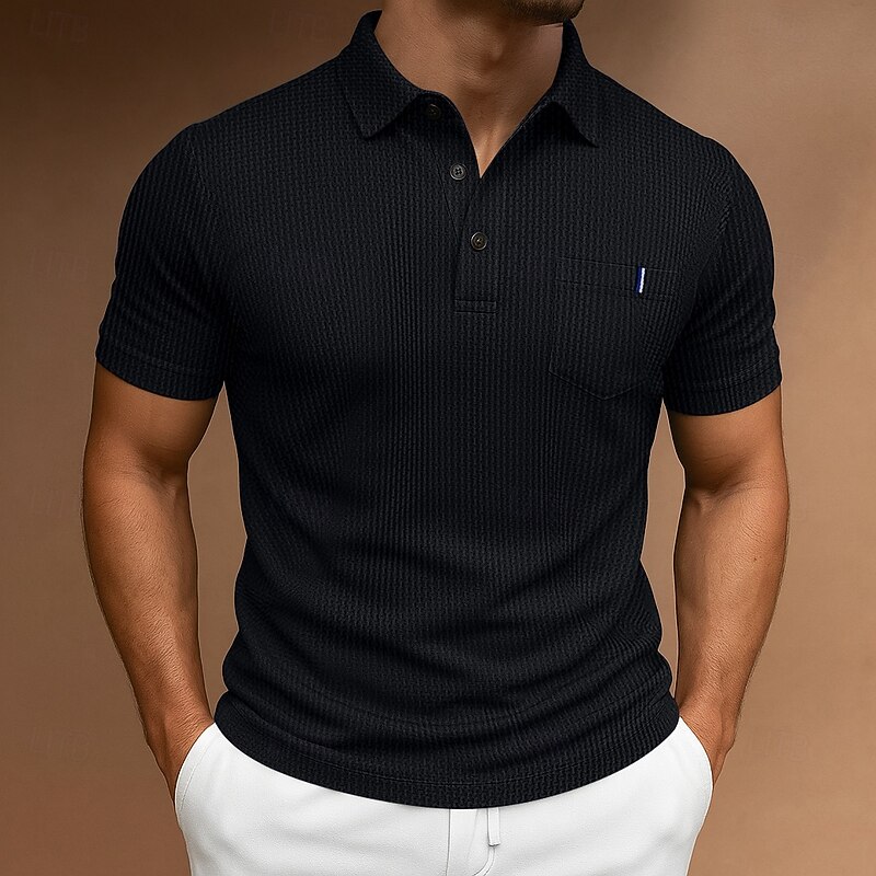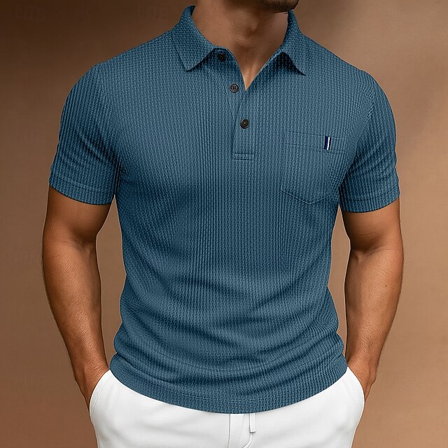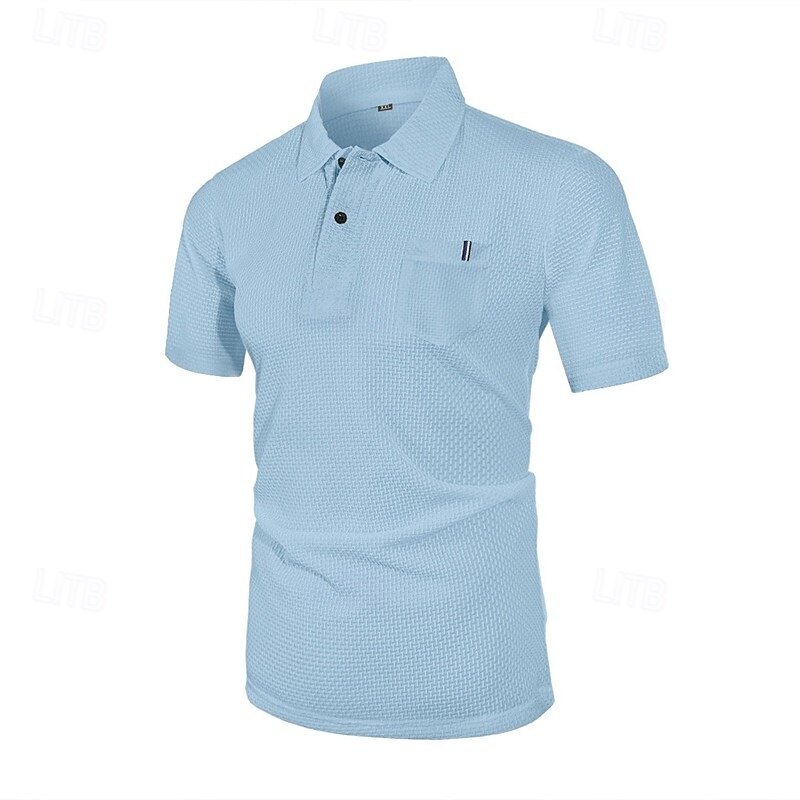 More information about Men's Golf Shirt Golf Polos Shirts Casual Sports Lapel Short Sleeve Basic Comfortable Plain Buttons Jacquard Summer All Seasons Regular Fit Black Blue Navy Blue Sky Blue Golf Shirt