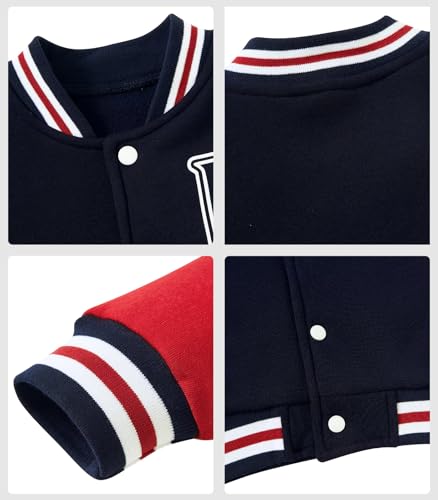 Kids Boys Baseball Jacket Toddler Varsity Fleece Letterman Coat Vintage Bomber Casual Button Outerwear with Pockets 6