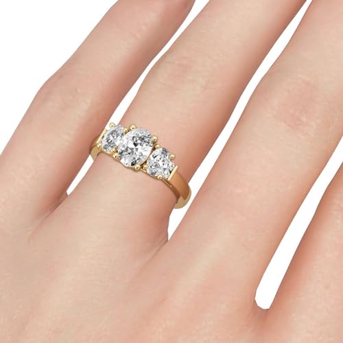 HOT ! Jeulia Three Stone Moissanite Wedding Rings for Women, Yellow Gold Sterling Silver Diamond Engagement Ring Band Romantic Birthday Anniversary Valentine's Day Jewelry with Gift Box