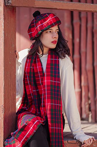 Scottish Traditional Set of Tam o' Shanter Flat Bonnet, Acrylic Wool Kilt Hat and Scarf in Many Tartans 5