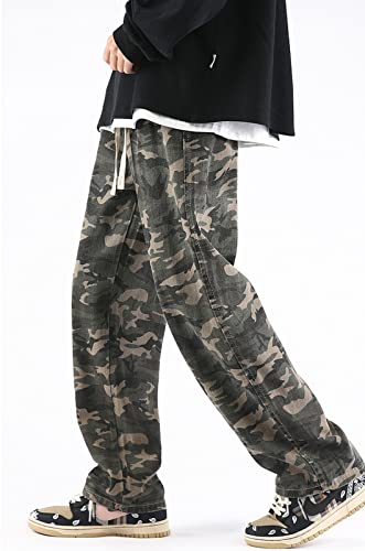 HOT ! Mens Patchwork Jeans Baggy High Waisted Straight Wide Leg Y2k Loose Camo Jeans Streetwear Denim Pants for Teen Boys