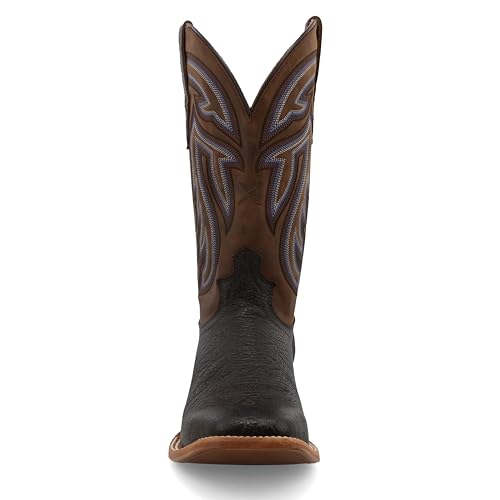 • Distinctive Embroidery: Black with blue and white western shaft embroidery on dark brown upper