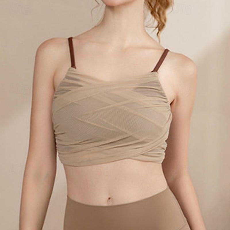 Women's Light Support Sports Bra Running Bra Open Back Removable Pad Bra Top Padded Fitness Leisure Sports Running Breathable Lightweight Soft White Brown Green Solid Colored 1