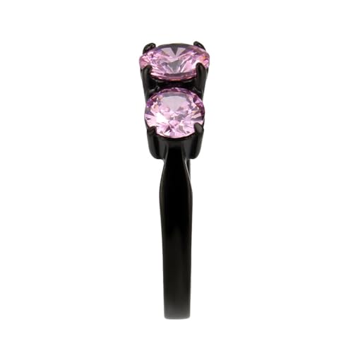 Goth Princess Round Pink 3-Stone Cubic Zirconia Cubic Zirconia CZ Engagement Ring, Black Hypoallergenic 316L Stainless Steel 5