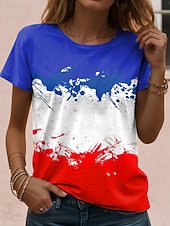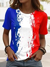 More information about French Women's T Shirt Graphic Flag Vintage Stylish Casual Short Sleeve Crew Neck Regular Tops Daily Weekend Print Red Blue Summer Spring