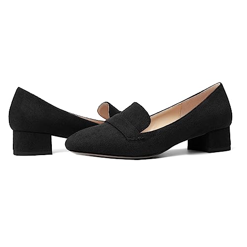AMBELIGHT Womens Square Toe Casual Office Slip On Soild Block Low Heel Pumps Shoes 1.5 Inch 1