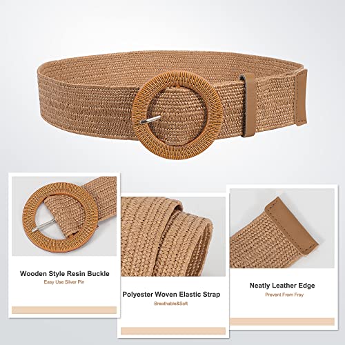 JASGOOD Straw Woven Elastic Stretch Belts Women Raffia Dress Waist Band Boho Ladies Braided Dress Belts 3