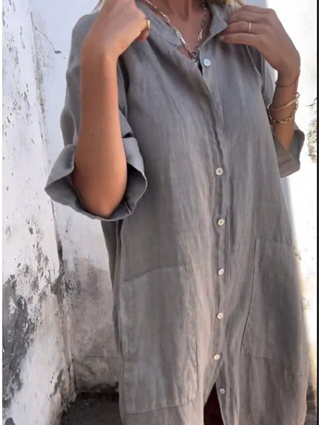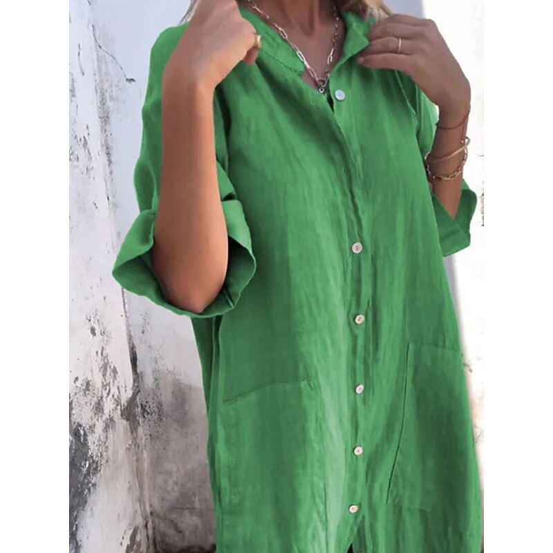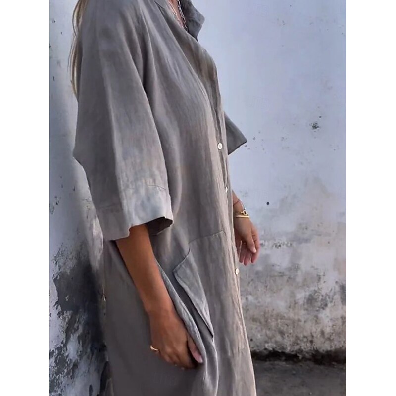 HOT ! Women's Long Dress Maxi Dress Cotton Linen Dresses Shirt Dress Casual Dress Basic Casual Vacation Casual Daily Loose Fit Plain Half Sleeve Shirt Collar Blue Green Khaki Gray Summer Spring Fall