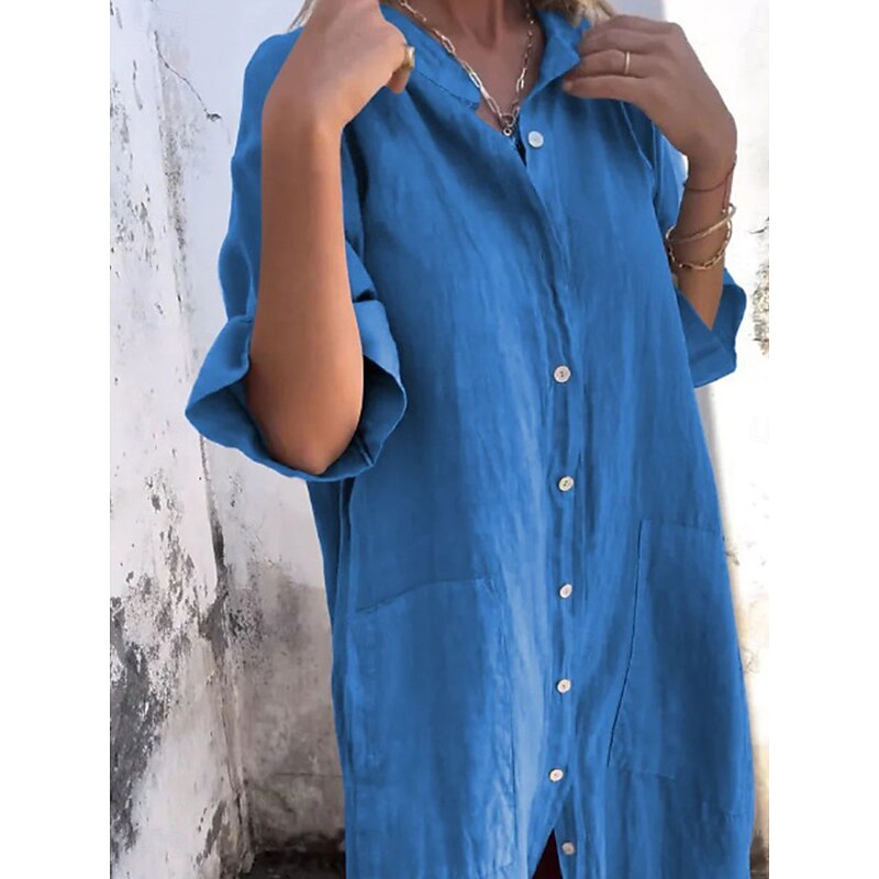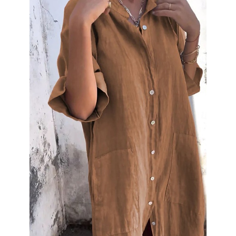 More information about Women's Long Dress Maxi Dress Cotton Linen Dresses Shirt Dress Casual Dress Basic Casual Vacation Casual Daily Loose Fit Plain Half Sleeve Shirt Collar Blue Green Khaki Gray Summer Spring Fall