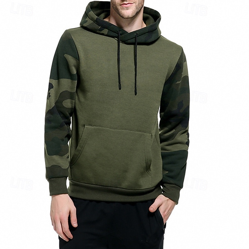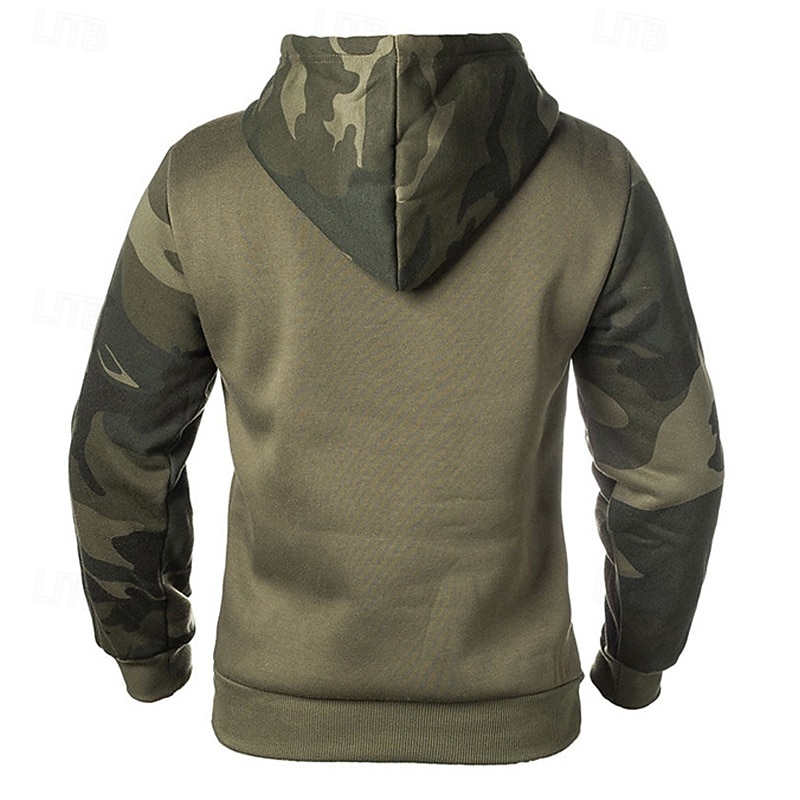 More information about Men's Hoodie Black Army Green Khaki Hooded Color Block Camouflage Patchwork Pocket Sports & Outdoor Daily Holiday Streetwear Basic Casual Spring & Fall Clothing Apparel Hoodies Sweatshirts