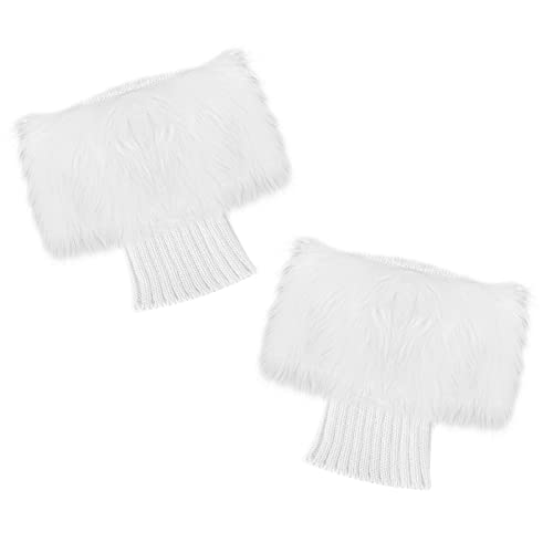 Lusofie Women Short Furry Leg Warmers 1Pair Winter Faux Fur Boot Cuff Fuzzy Fluffy Leg Warmers Knitted Fur Boot Covers Warmers Short Furry Winter Knitted Boot Socks 2